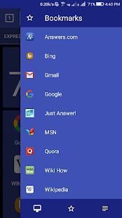 - Quick search: Google, Gmail,Youtube,Yahoo, Bing, Quora, justAnswer, and other default search engines