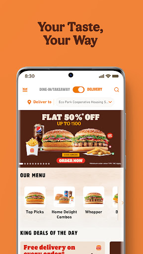 Order through the App to let the King adapt to your taste, and recommend food items according to your preferences.