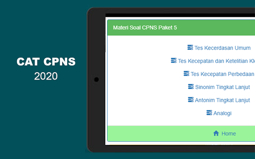 The LATEST TEACHER CPNS 2021 OFFLINE CAT application is a Digital Computer Assisted Test (CAT) Simulation Media along with material and sample questions for prospective civil servants who will participate in the 2021 CPNS test selection held by the regional government.