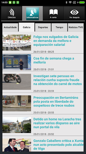 News of the Television of Galicia. Access to different themes: sports, Galicia, the world and the weather