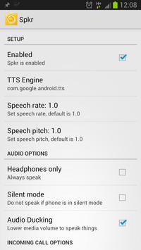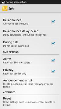 Spkr announces caller id or contact name (if caller is in your contact list) for all calls and SMS messages.