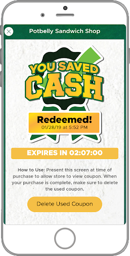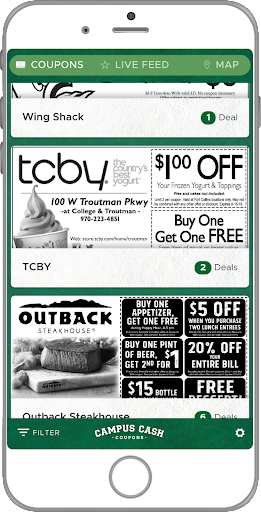 The Campus Cash App lets you find the best deals at your favorite spots! Find coupons and deals for everything from food and services to retail & more!
