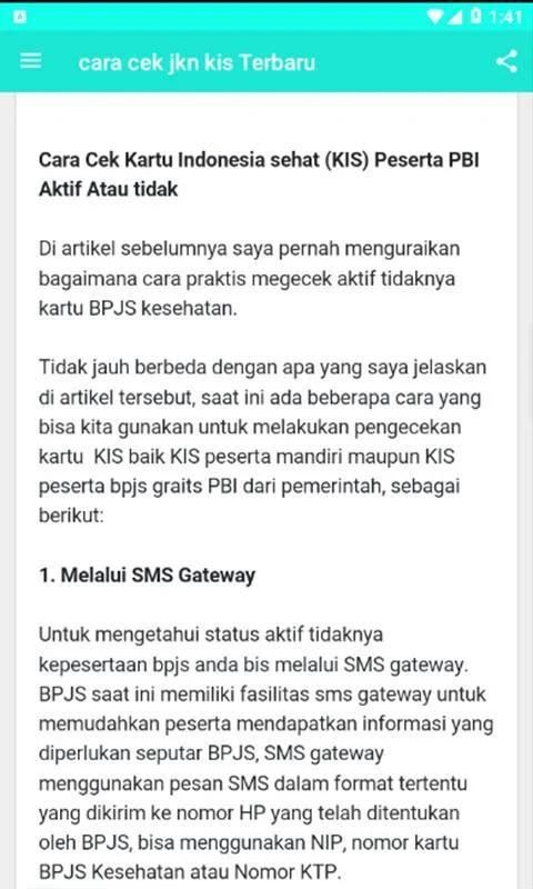 Cara Cek JKN KIS Online Terbaru - Dengan adanya panduan didalam aplikasi Cara Cek JKN KIS Online Terbaru, Anda tidak usah bingung UNTUK mencari tutorial cara mengecek Cek JKN KIS ditempat lain karena hanya dengan menggunakan handphone anda maka tutorial tersebut bisa anda dapatkan.