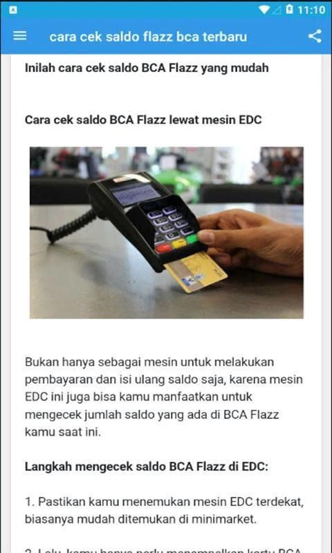 This How to Check BCA Flazz Balance application is an application about how to check BCA Flazz card both online and offline. Without needing to go to an ATM, checking Flazz balances can actually be done on a cellphone.