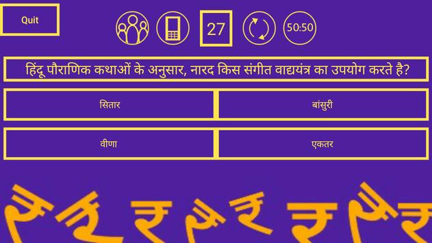 > This is the Crorepati Hindi (हिन्दी क्विज़) Version of the game. So everything will be in Hindi language.