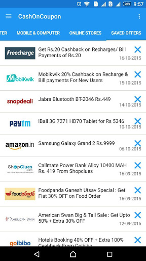 CashOnCoupon.com is India's Most Popular Cashback and Coupons website. Our goal is to help our members save on their regular online purchases at leading Indian and International Brands. Our Cashback and Coupon partners include your favourite brands like Flipkart, Snapdeal, Flipkart, Amazon, Jabong and lot more. Since you shop at these brands anyway, this is truly free money, just for visiting the retailers through CashOnCouon.com & shopping like you normally do. Learn more about how cashback works here. Unlike coupon sites in India, with our offers you also earn Cashback on top of the Coupon savings. Furthermore, our discounts are always over and above any offers.