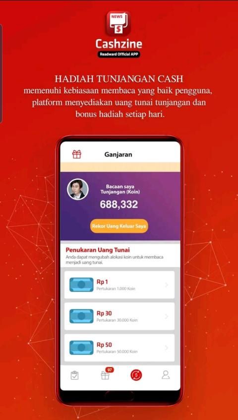 Dalam rangka untuk memenuhi kebiasaan membaca yang baik pengguna, platform menyediakan tunjangan kas dan bonus. Untuk memberi pengguna berbagai tingkat imbalan dalam bentuk koin dalam aplikasi. Sebagai contoh: membaca artikel untuk mendapatkan 50 koin emas, melakukan tugas untuk mendapatkan 150-300 koin emas, 4 kali lebih. Pengguna dapat bertukar koin emas menjadi uang tunai sesuai dengan preferensi mereka sendiri, sebagai tunjangan membaca mereka sendiri, dan bebas biaya.