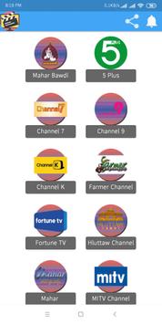 MRTV MWD MRTV-4 , Channel 7, 5-Plus, MNTV, Channel-9, Mizzima TV, DVB TV, YTV, Channel K, Fortune TV Myanmar International TV Myanmar National TV and many channel
