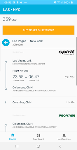 ✔️ Buy flight tickets from within the app