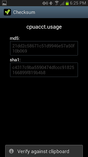 The Android equivalent to the Linux tools md5sum and sha1sum.