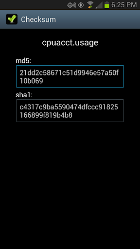 'Copy to clipboard' by double tapping the MD5 or SHA1 results.
