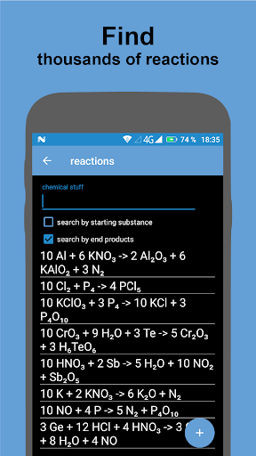 The ChemCalc App can be used to quickly and easily balance chemical equations. The app contains a stoichiometry calculator which can be used to calculate the masses/volumes of the starting substances and end products of the chemical reaction. Chemical equations, which are often used can be marked and later found in the Favorites section.
