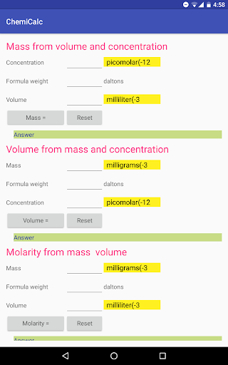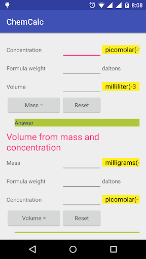 This can perform chemistry calculation offline. This app can be used by scientists,chemistry faculties and students.We are focusing on adding many more features to this application. So we would appreciate any of your suggestions.