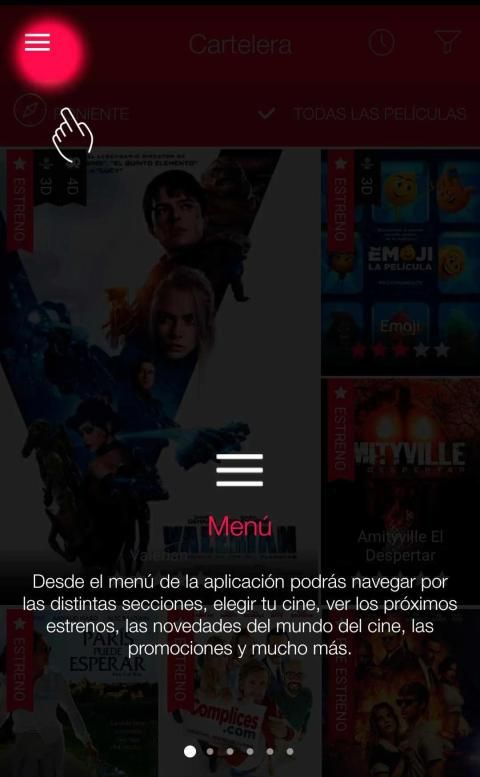 3 The application has a geolocation module that identifies the closest theaters where you are to facilitate consultation billboard.