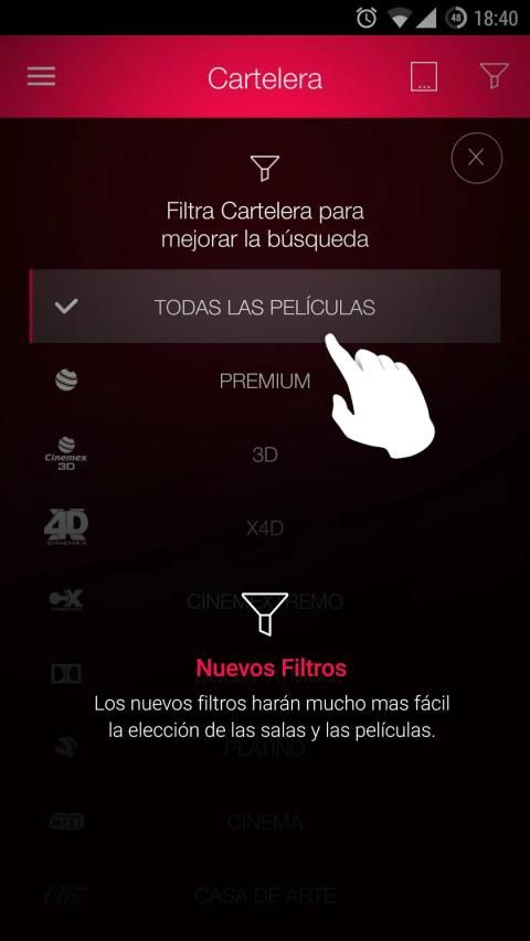 We present the new application for Android BRAND NEW Cinemex that lets you check for faster and more intuitive billboard of your favorite movies and buy tickets way in 3 simple steps.