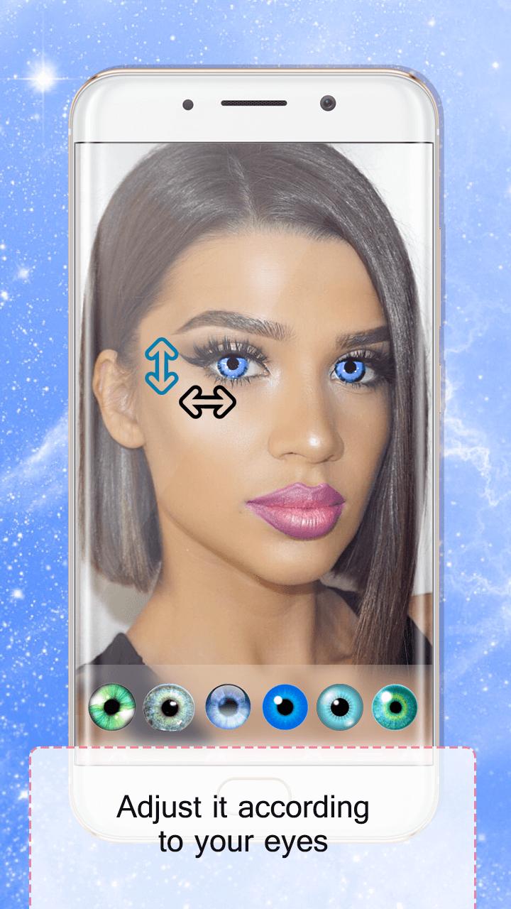 We have prepared 👁 Colored Contacts Face App👁 for you to change your eye color and get some ''colored lenses''! Our best ''change eye color app'' free of charge will offer you ''colored eye contacts'' and you will able to try out blue or green lenses or maybe black and brown... Everything depends on your eyes' color. Everyone becomes bored by their physical appearance, so why don't you change something? We are offering you more than 50 stickers of different ''colored contacts'' that will help you show your inner spirit! It's never too late to install this new ''virtual makeover'' editor! Our ''fashion contact lenses'' will help you get your natural looking colored contacts for free and then, maybe, you can change your look for real!