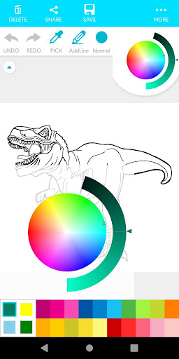 "Coloring: Dinosaurs New" lets you color your favorite dinosaurs and lots of cute pictures.