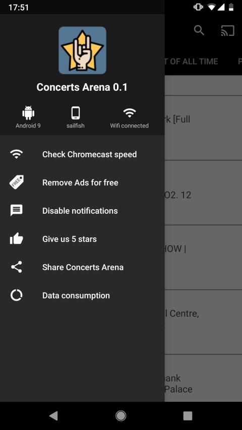 • Enjoy free full concerts in your mobile device, tablet or big screen with your Chromecast or Chromecast built-in TV . No subscription needed!