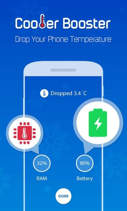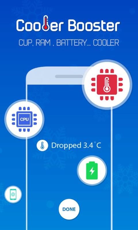 Cooler Booster - CPU Cooler is a Lightweight yet Powerful cleaner to clean up and boost your device. Cooler Booster - CPU Cooler is Professional temperature monitoring and controlling app that detects and closes heavy resource consuming apps to reduce CPU usage and lower phone temperature. And it’s all for Free!!!