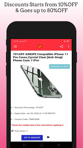 If you are looking for an App which will provide you with Amazon coupons, and help reduce the price of your favorite products on Amazon, and let you save some money using amazon promo code, our App Amazon Coupons will provide you with a daily unlimited products under discounts up to 80%, using amazon promo code, you'll be able to save yourself a good amount of money, and you'll be notified about all the available deals.