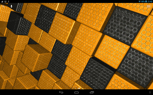 In Cube 3D Live Wallpaper you can change visual settings like color of cubes and also change cube behavior, height of fluctuations or speed of rotation of cubes platform. Modify colors of cubes and try beautiful combinations of colors - red and black, yellow and brown, orange and green - find you own combination.