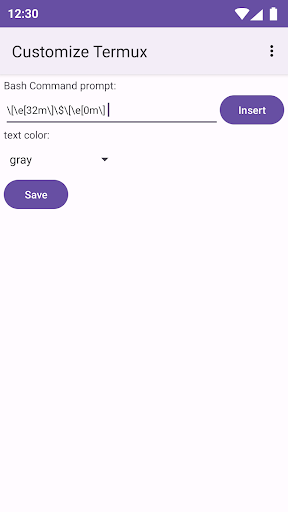 Customize termux text color & bash command prompt style. Features: -Change terminal text color. -Customize command prompt ("$ "), with colored text and escape sequence.