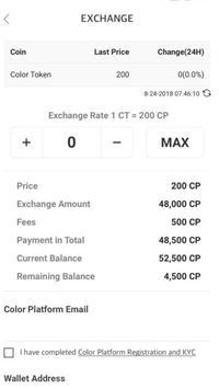 * You can exchange Color Point for Color Token and market price shall be applied