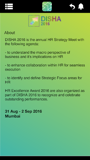 DISHA 2016 is the Annual HR Strategy Meet with an agenda to understand the macro perspective of business and its implications on HR, to enhance collaboration within HR for seamless execution and to identify and define Strategic Focus areas for HR.