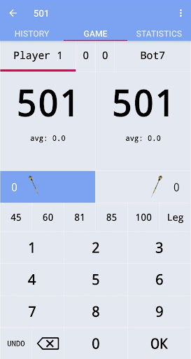 The program for scoring when playing darts.