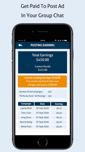 Monetize your WhatsApp, WeChat, Line or Viber. Get paid for posting business owners’ ads in your group chat. Earn monthly bonus as Top Post & Earn user.