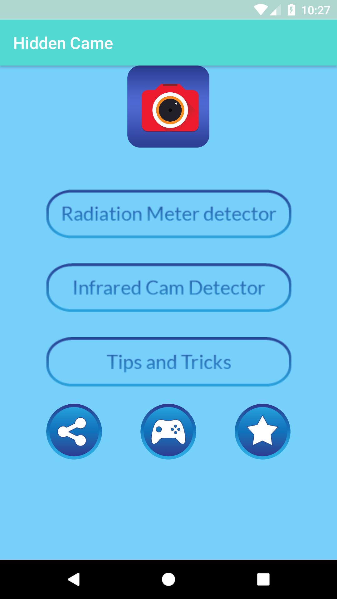 The Detect hidden surveillance camera app is designed to detect "potential targets" that could be a specialized spy camera, these include pinhole and other small lens cameras. It is designed to detect ordinary security cameras and hidden cameras.Spy cameras are so common they can now be hidden in teddy bears, clocks, watches,몰카, 몰래카메라, key chain remotes and even in your bathrobe and towel hooks! Use our camera finder app to find hidden spy cameras today so install this anti spy app and protect yourself and your family.