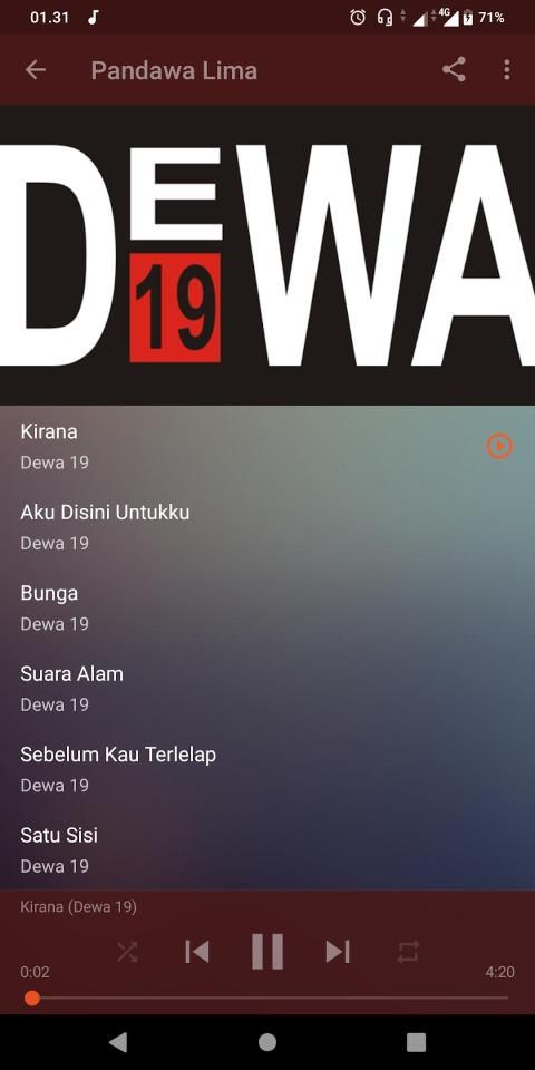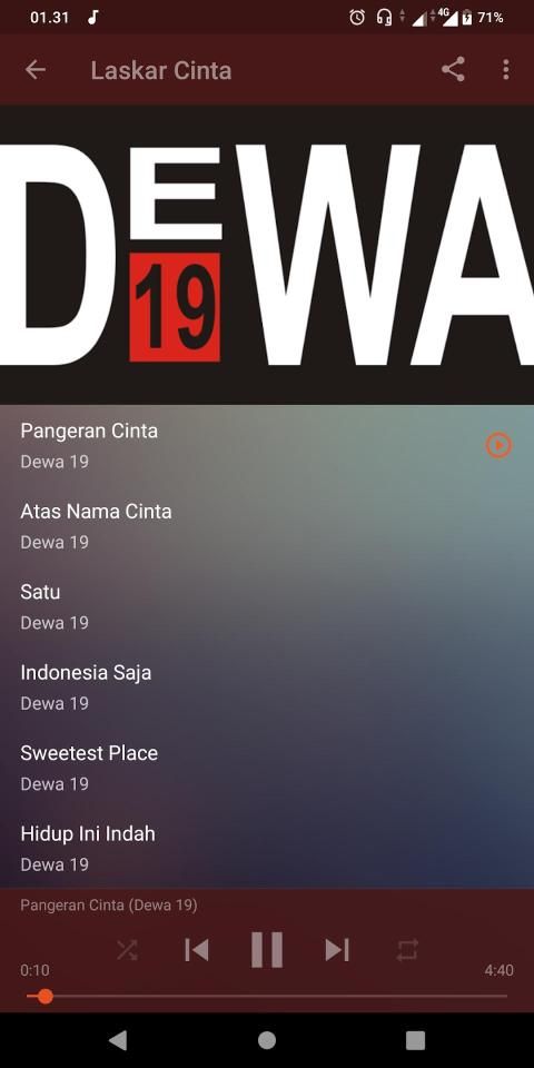 Aplikasi mp3 lagu lagu band dewa 19