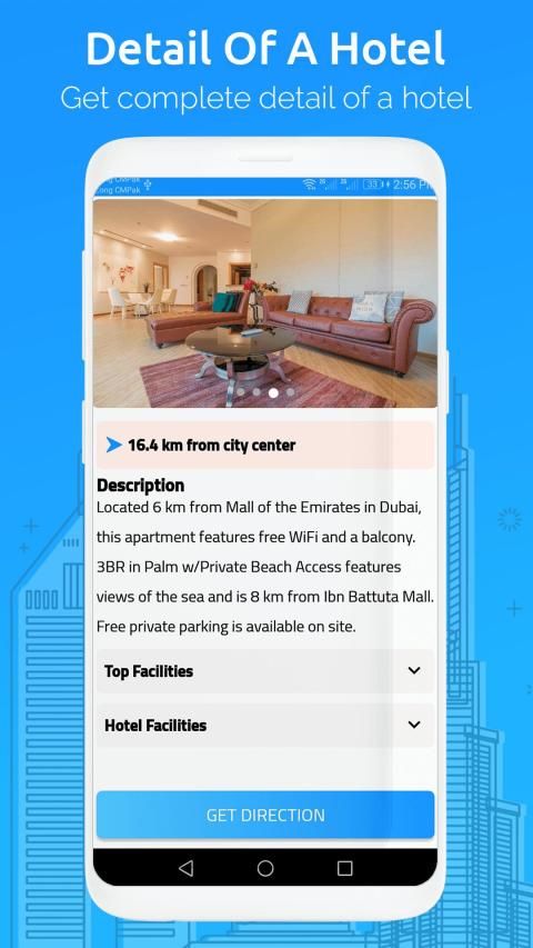 4. Get Direction of any place and hotel from your current position
