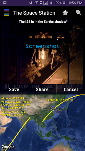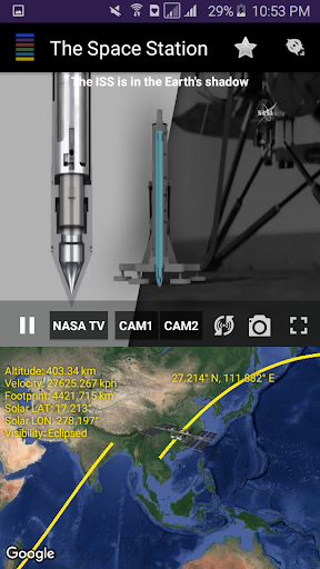 ISS Live Stream CAM 1 - This is the main cam stream and can be dark while it enters the shadow of the earth. Here is where you can see the cool stuff at. It gives you the live video feed of Earth