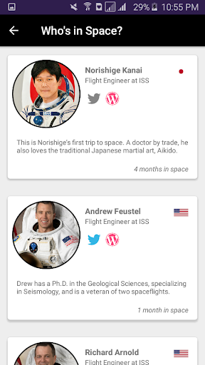 This new feature allows you to see in real time who's in space, their names, background details and so on. This is for educational purposes.