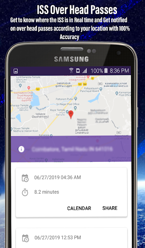 Be notified and check, share and set calendar reminder notifications for your ISS passes that are next in line to be occurred at your location.