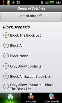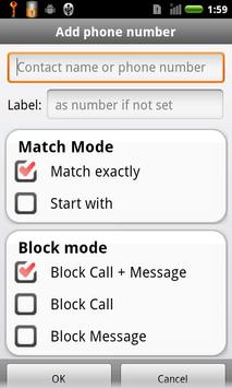 - Choose call block and txt block scenario / mode