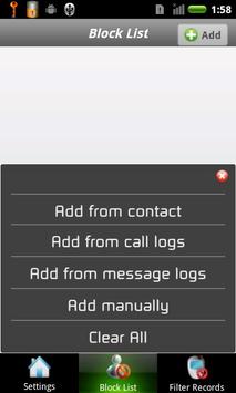 - Add numbers or contacts to block list from history or saved contacts
