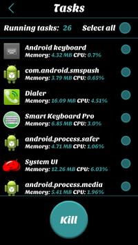 The application uses a sophisticated technology to optimize the performance of your device. It automatically kills low priority tasks every 2 hours. For maximum results you should do a manual