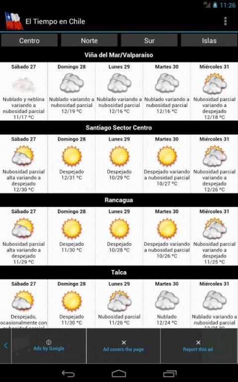 The information is automatically extracted and periodically Meteorological Directorate of Chile and presented graphically, with forecast of 5 days.