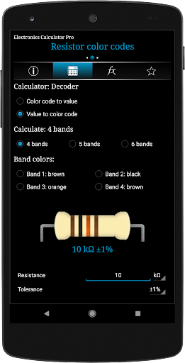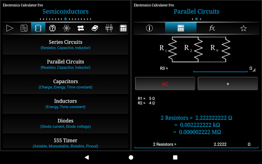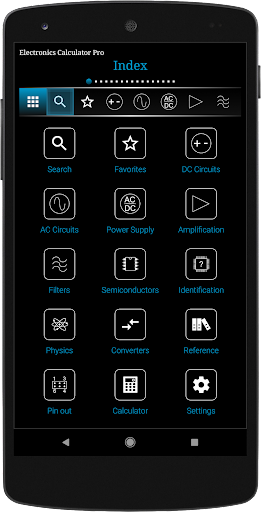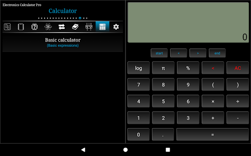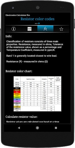 Electronics Calculator Pro is a utility application consisting of various calculators, conversions, reference tables, pin outs and basic pocket calculator.