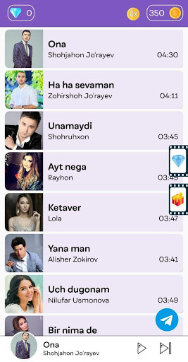 Ilovada quyidagi xit qo'shiqlarni tinglashingiz mumkin: