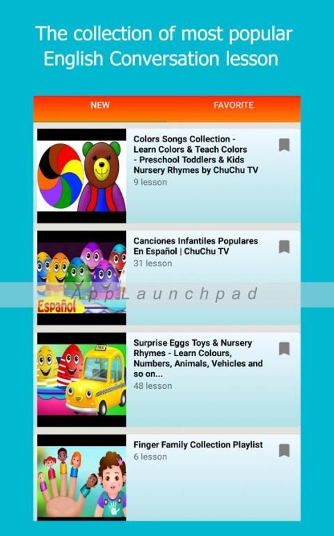 You can bookmark your favorite lesson. You will learn English quickly. With English Conversation For Kids, children are able to learn English by our great lessons.