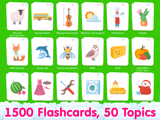The app has1500 voiced flashcards in English and several educational games: "Find a Picture", "Coloring", "Puzzles", "Find a Word", etc. Also additional sounds (such as animal voices) and short videos. Children really like to watch these interactive flashcards, and they do not lose interest in learning.