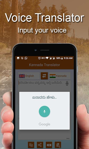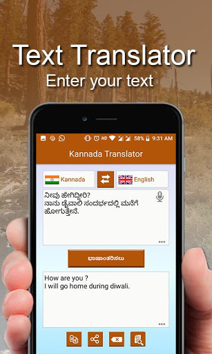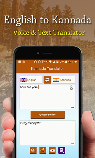 The best translator app for English to Kannada | Kannada to English language. Language translator is excellent app to translate text or speech. It translates your inputted text or speech in fraction of seconds. You can also share and copy translated text.