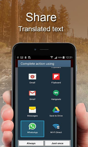 If you want to share your translations with your friends, you can easily share directly to your facebook wall | friends, send it through WhatsApp or facebook messenger, email, sms or any other application you have installed on your mobile device.