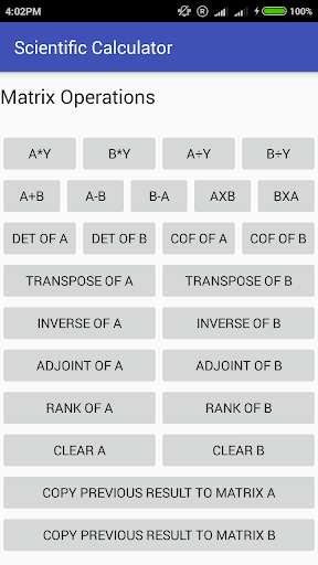 7) Matrix operations such as to find Inverse, Adjoint, cofactor,rank and determinant. Perform addition, multiplication and subtraction of Matrices