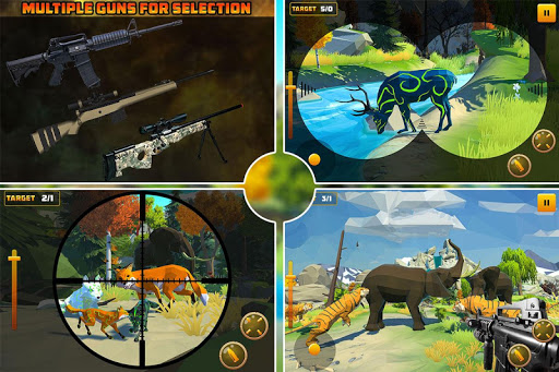 Enjoy the real fun of playing fps shooting games in this fantasy hunting jungle sniper shooting game. Those who can’t go on forest and didn’t ever tried hunting, due to terrible animal. Now they can remove their fear by playing this new fantasy animal hunting simulator game. It is time to load out your weapons and shoot the different animal with modern sniper guns, rifles and pistols. Pick your favorite weapons to shoot the fantasy animals in jungle.Complete all the dangerous shooting challenges and kill the most dangerous animals in few time to prove that you are the world’s best animal shooter. In this fantasy animal sniper shooting simulator hunt the animals like Tiger, Lion, Deer, Fox, Wolf and Gorilla. This Fantasy Animal Hunter game has exciting forest environment with amazing fields, trees, riverside hunt, running aim and other excited animations to give you a real feeling of doing prey of animals. Low poly Animal sniper shooting one of the most addictive killing mission contest which will give you tough time by shooting your animals.