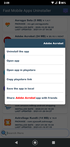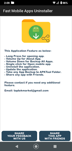 Fast Mobile Apps Uninstaller is a personally developed android application that lets you to Backup, Share and Manage the applications of your android device.