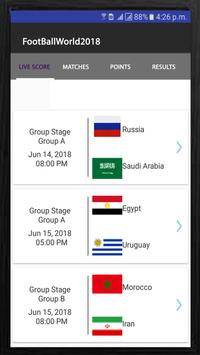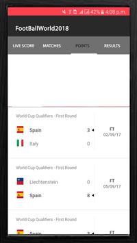 Points tab is about details of Fifa World Cup teams groups and points and standings of world cup teams. You can see it in more details by selecting any group in list. Results shows all results of matches and news. All information is updated instantly you don’t need to update or refresh or wait for update.